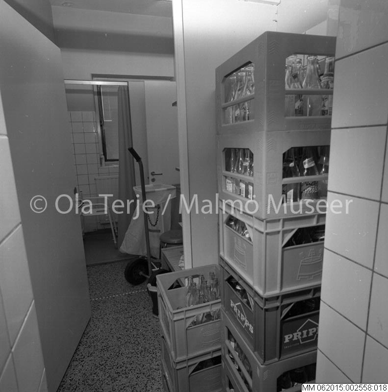 Onkologiska Kliniken vid Lunds Lasarett. Dokumentation av lokaler och verksamheter. 1988. Avdelning 86. Förråd.