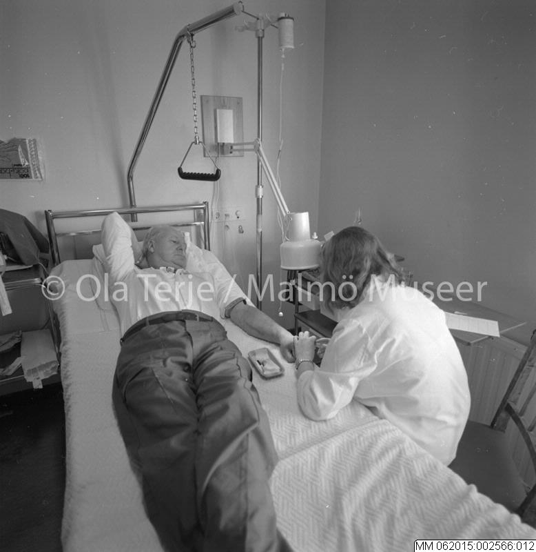 Onkologiska Kliniken vid Lunds Lasarett. Dokumentation av lokaler och verksamheter. 1988. Avdelning 86. Vårdrum. Provtagning.