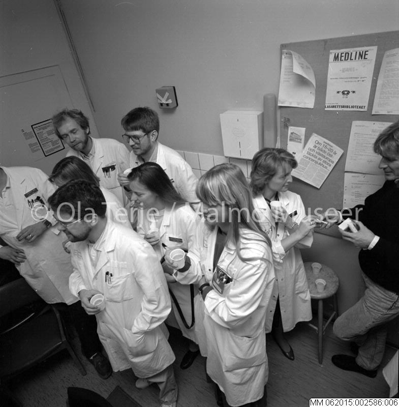 kafferum, klinik, personal, lasarett, onkologiska kliniken, interiör, kvinna, man, firande
