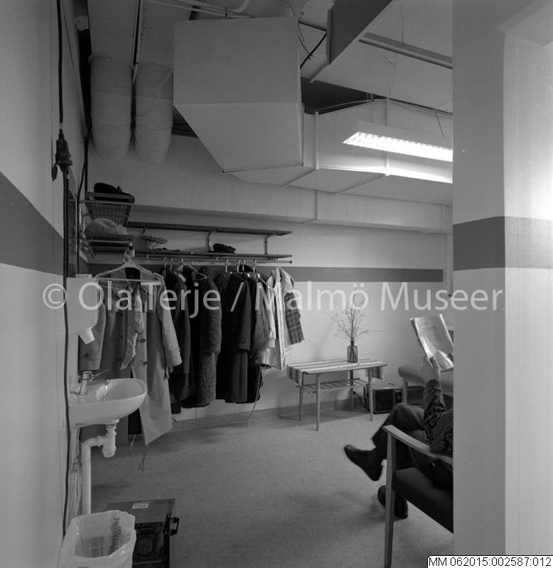 Onkologiska Kliniken vid Lunds Lasarett. Dokumentation av lokaler och verksamheter. 1988. Isotopavdelning. Väntrum.