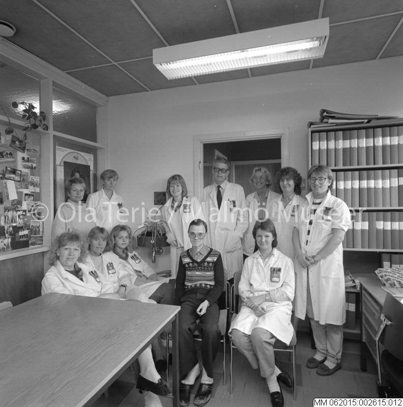 Onkologiska kliniken vid Lunds lasarett. Dokumentation av lokaler och verksamheter. 1988. Personalen på Tumörregistret.