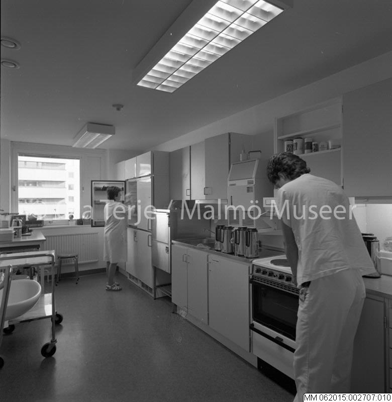 Ögonkliniken vid Lunds Lasarett. Dokumentation av verksamhet och lokaler. 1989. Kök. Avd. 40.