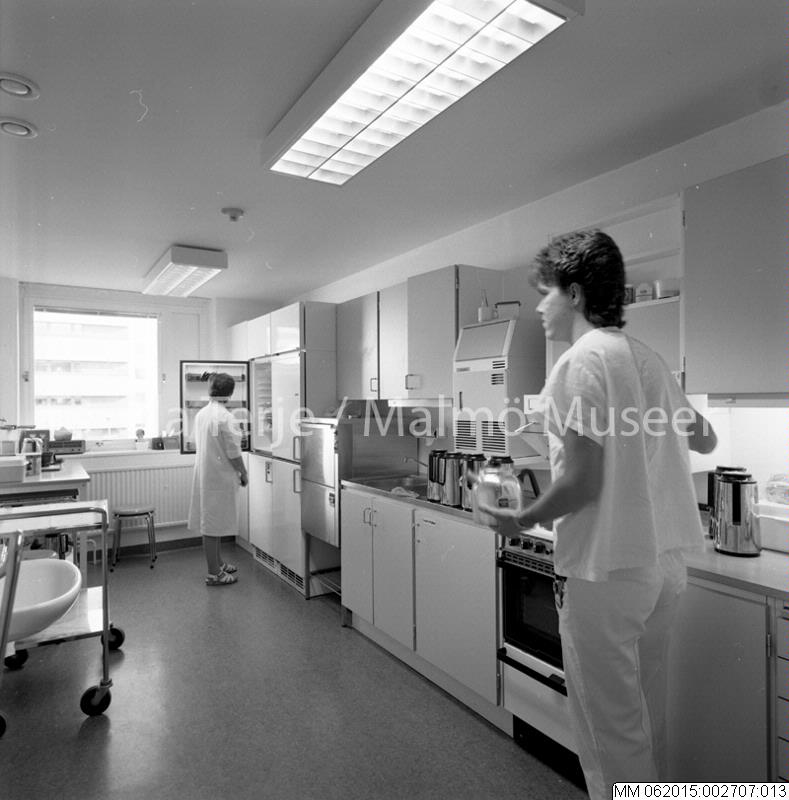Ögonkliniken vid Lunds Lasarett. Dokumentation av verksamhet och lokaler. 1989. Kök. Avd. 40.