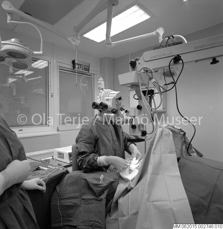Ögonkliniken vid Lunds Lasarett. Dokumentation av verksamhet och lokaler. 1990. Ögonoperation.