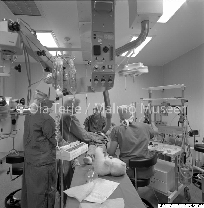 - Ögonkliniken vid Lunds Lasarett. Dokumentation av verksamhet och lokaler. 1990. Ögonoperation.