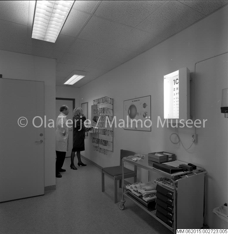 MM 062015:002723:005 :: lasarett, lokal, undersökningsrum, ögonklinik, glasögonbågar, syntavla