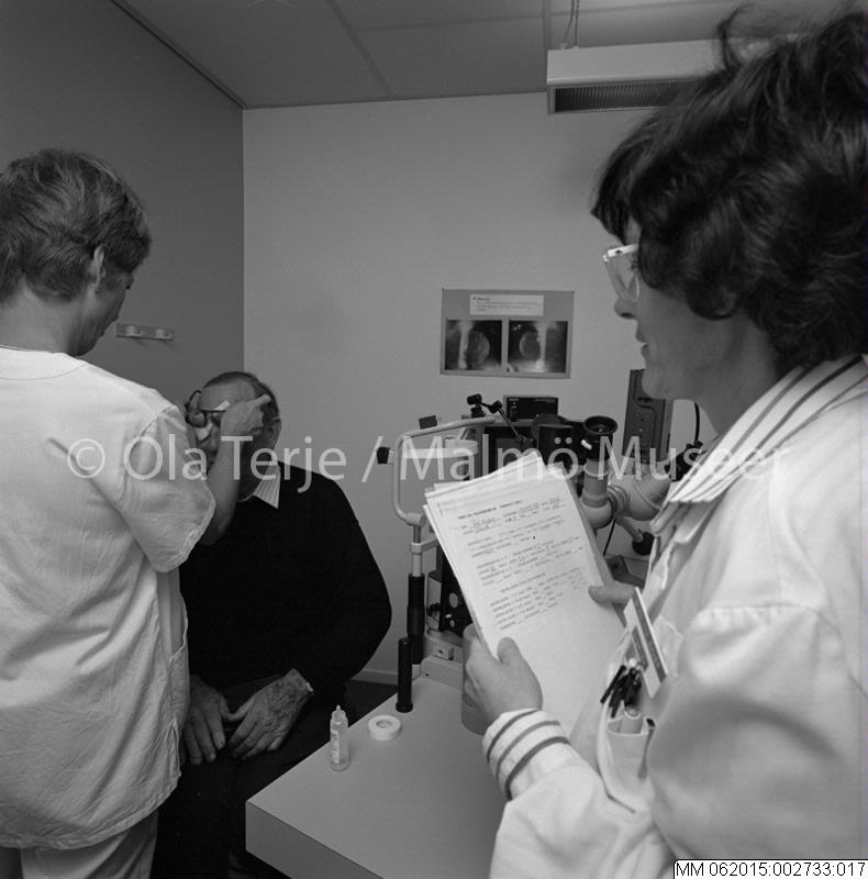 Ögonkliniken vid Lunds Lasarett. Dokumentation av verksamhet och lokaler. 1989. Ögonundersökning.