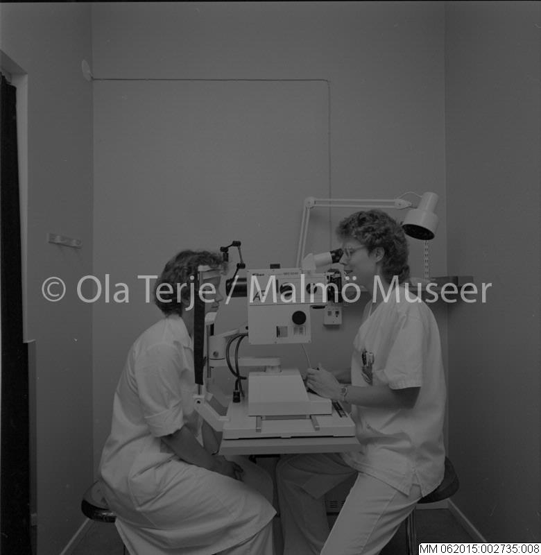 Ögonkliniken vid Lunds Lasarett. Dokumentation av verksamhet och lokaler. 1989. Ögonundersökning.