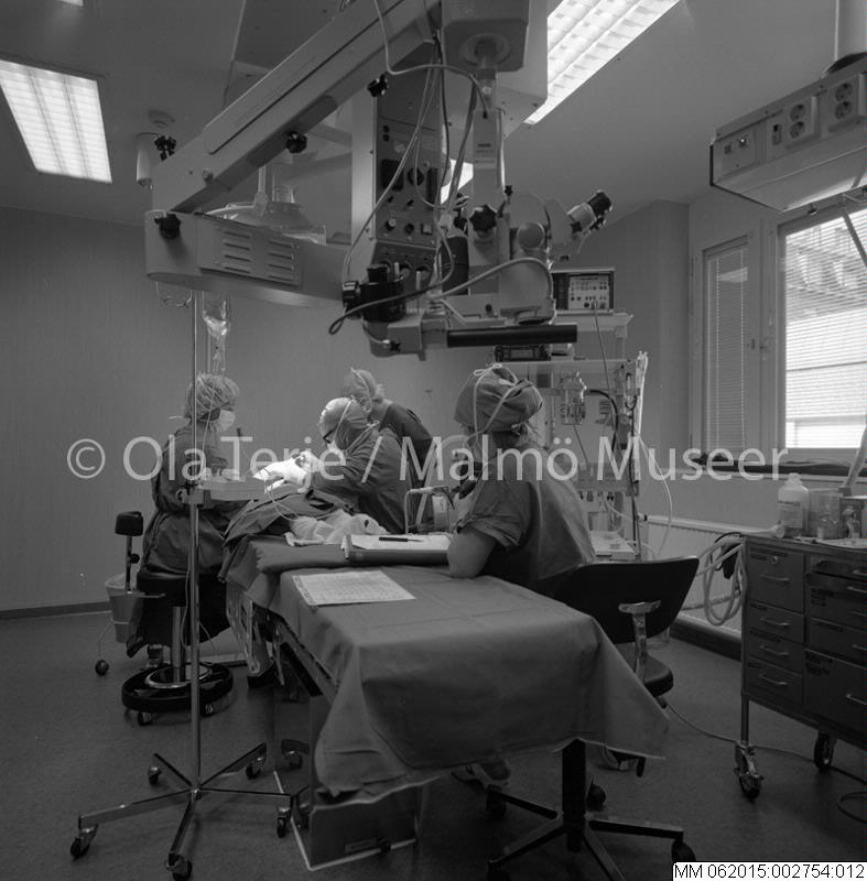 - Ögonkliniken vid Lunds Lasarett. Dokumentation av verksamhet och lokaler. 1990. Ögonoperation.