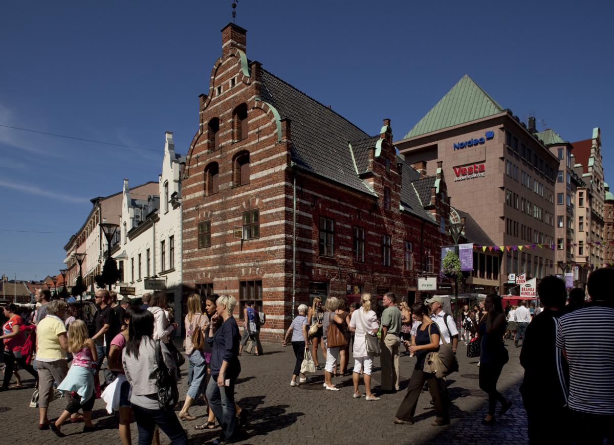 Centrum, Malmö, stadsgata, gata, shoppinggata, människor, soligt, sommar, flensburgska huset, 1500-tal