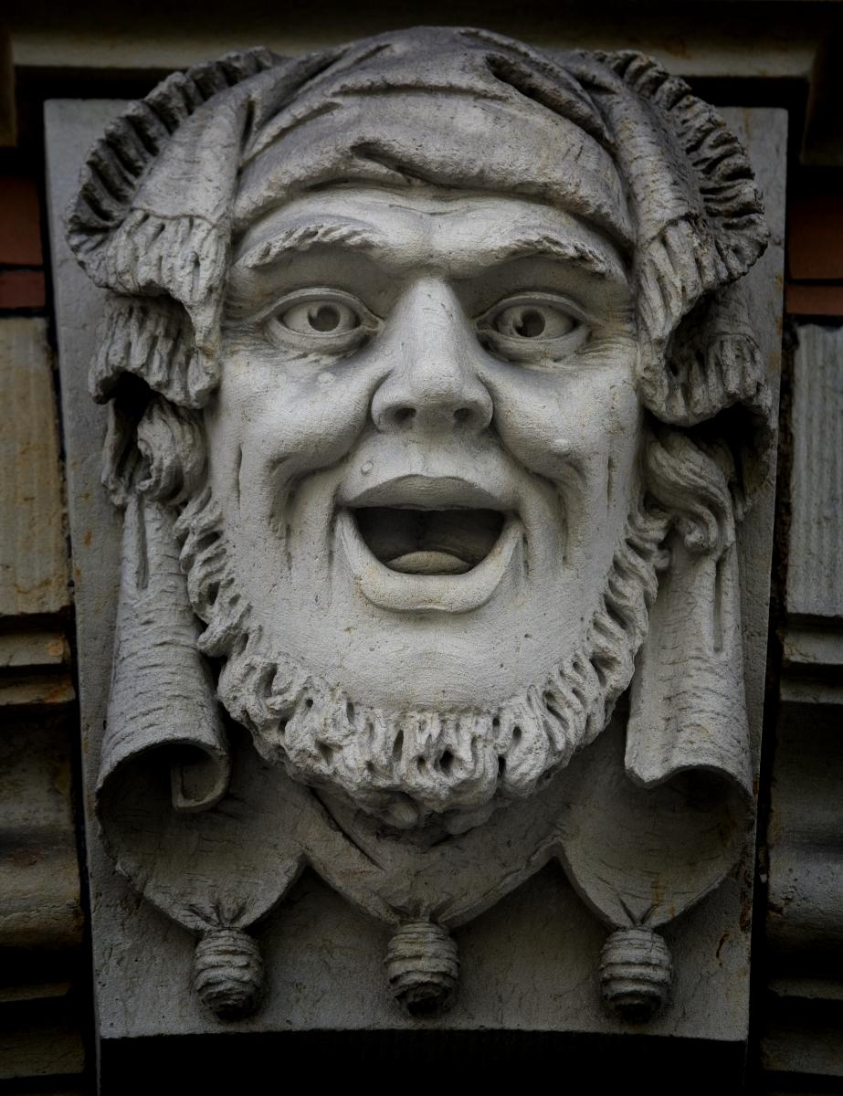 Centrum, Malmö, figurer, fasaddekoration, fasad, stenfigurer, ansikten, stenansikten