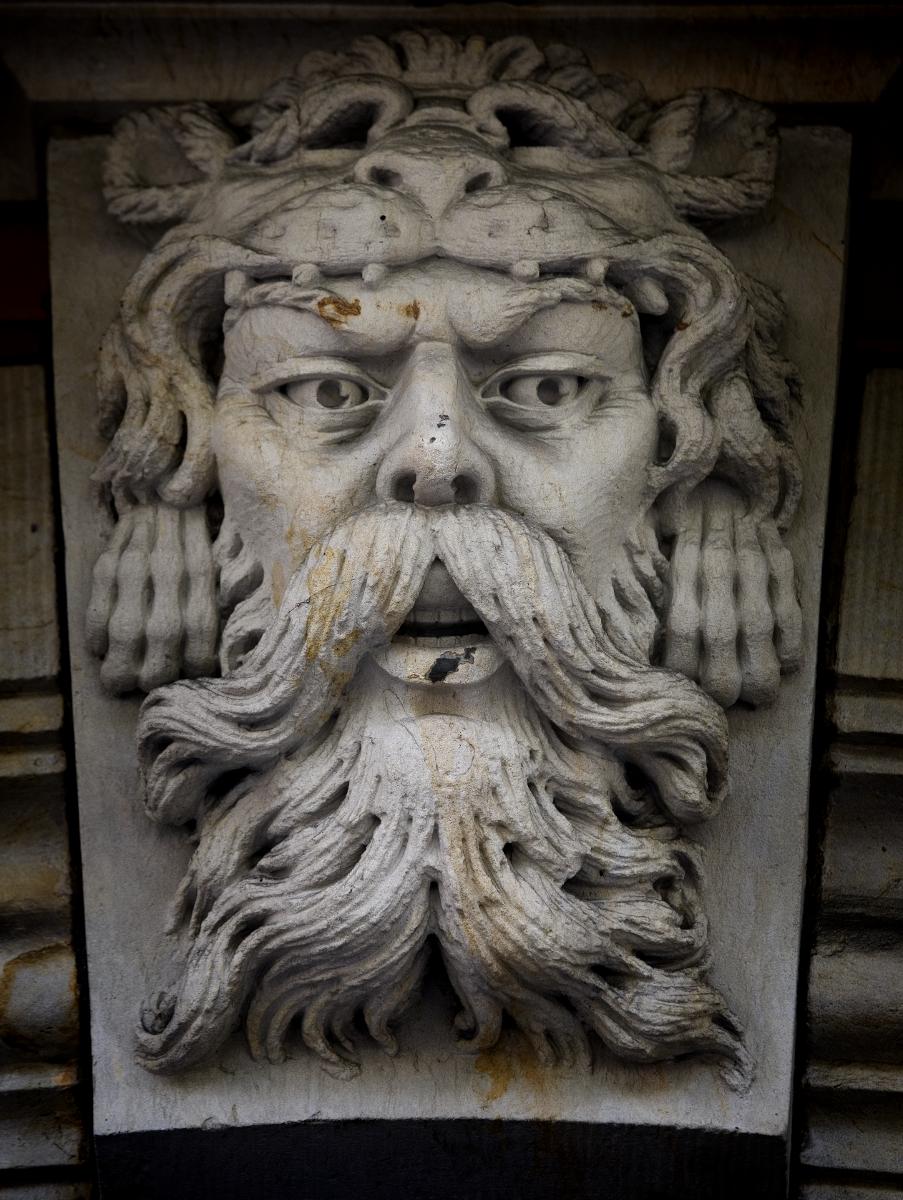 Centrum, Malmö, figurer, fasaddekoration, fasad, stenfigurer, ansikten, stenansikten