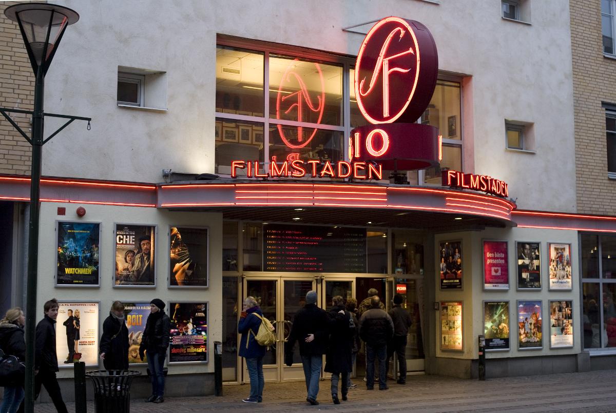 Centrum, Malmö, bio, biograf, belysning, besökare, människor, filmstaden