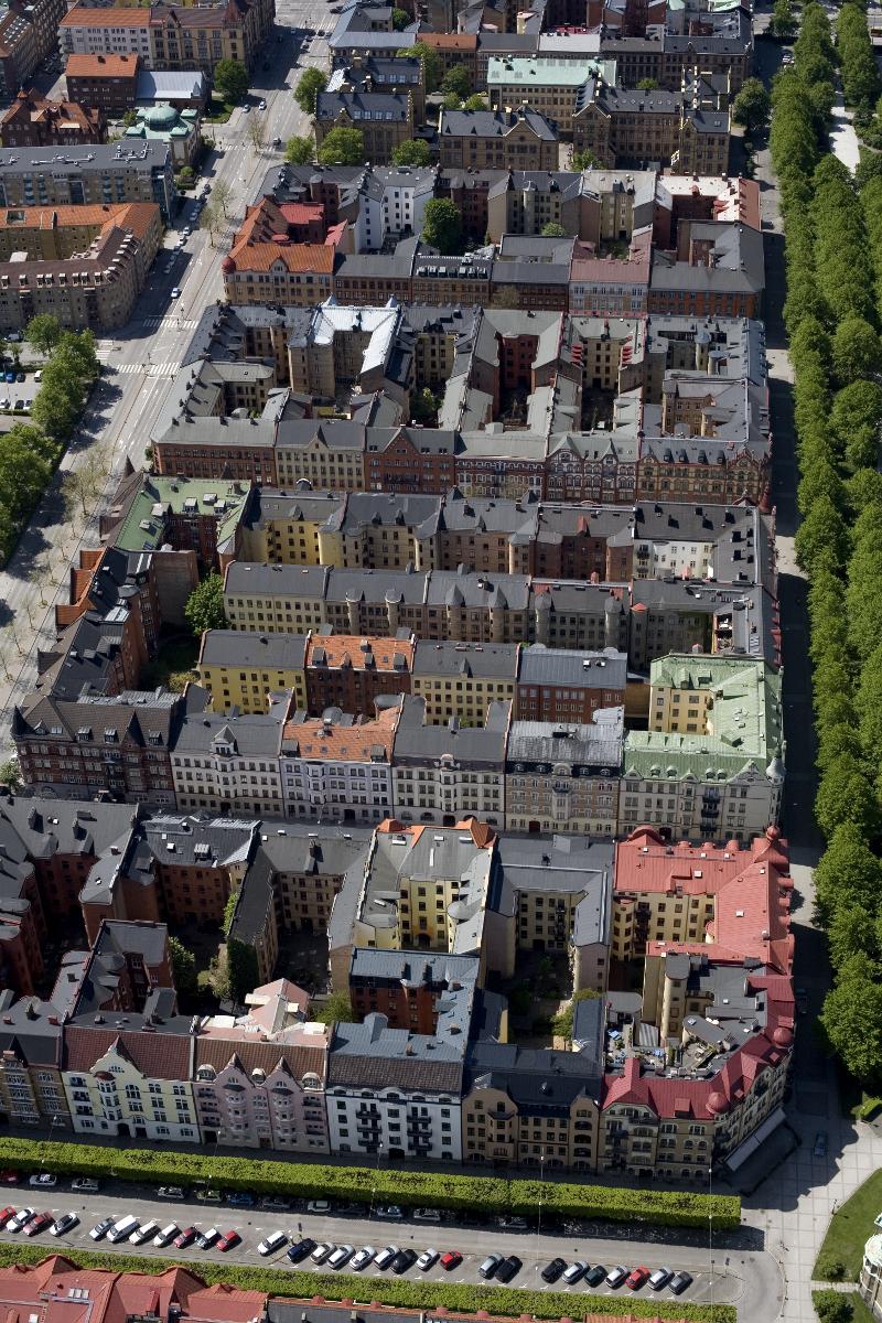 Rörsjöstaden med S:t Pauli Kyrkogata i förgrunden. Lindallén är arkadbeskuren; trädkronorna har formats till rätvinkliga gröna tak. De likaså fyrkantiga sekelskifteskvarteren ramas in av Föreningsgatan till vänster och Kungsgatan till höger. Sturegatan, Stenbocksgatan, Kornettsgatan och Löjtnantsgatan skär genom stadsdelen. I de röda husen i hörnet av Sturegatan/Föreningsgatan har regissören Lukas Moodysson och deckarförfattarna Sjöwall/Wahlöö tidigare bott. (Ur Dokument Malmö).