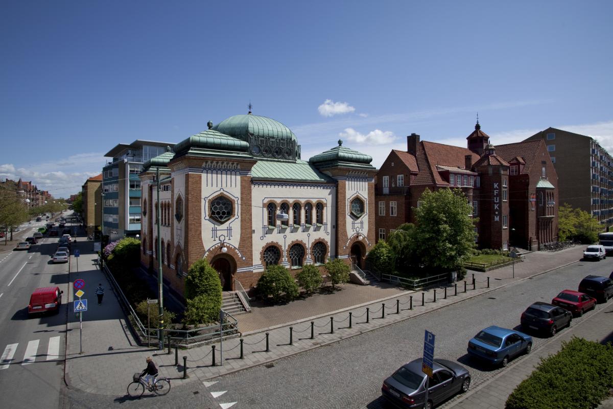 Synagogan vid Föreningsgatan stod klar 1904. Arkitekt var John Smedberg, som bland annat också ritat Pauliskolan och S:t Petri läroverk. Den orientaliska stil som präglar synagogan var vanlig i Östeuropa, men de flesta av dessa synagogor förstördes av nazisterna. Judiska församlingen i Malmö grundades 1871 och har i dag cirka 800 medlemmar. Antisemitiska stämningar och incidenter har på senare år skapat stark oro och fått Malmöbor med judisk bakgrund att fundera över om de vill och kan bo kvar i hemstaden. (Ur Dokument Malmö).