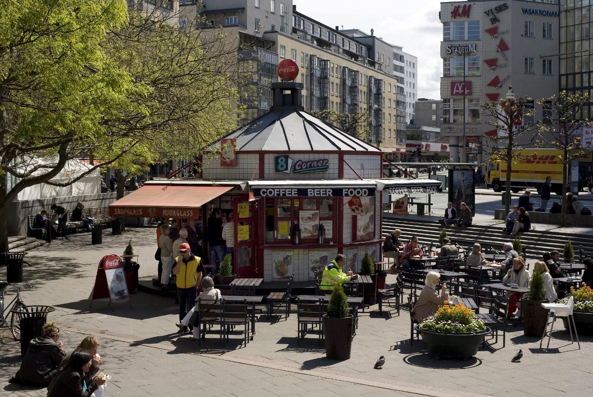 Kioskerna. Konkurrensen om snabbätarna har hårdnat sedan den tid då en tjock korv med räksallad var en kulinarisk sensation. Men kioskerna håller ännu luckorna öppna och har i många fall blivit en del av det lokala kulturarvet. En vårstrut hos Rönneholmsglass, till exempel, är en Malmöklassiker. Och kiosken vid Kaptensbron har väl alltid funnits. Och skulle inte Triangeln vara tomt utan sin kaffepaviljong. Och kinakäk i kiosk, är inte det just vår tids grillad med mos, så mainstream det kan bli. Som gjort för Gustav, torget mitt i stan. (Ur Dokument Malmö).