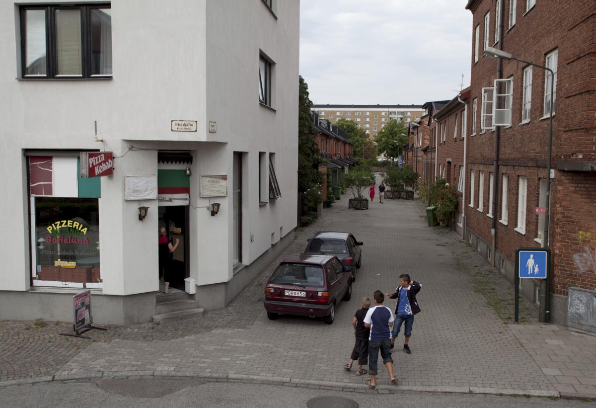 Innerstaden, Malmö, S Innerstaden, Sofielund, stadsbebyggelse, stadsgata, gågata, bil, bilar, pojke, pojkar, pizzeria