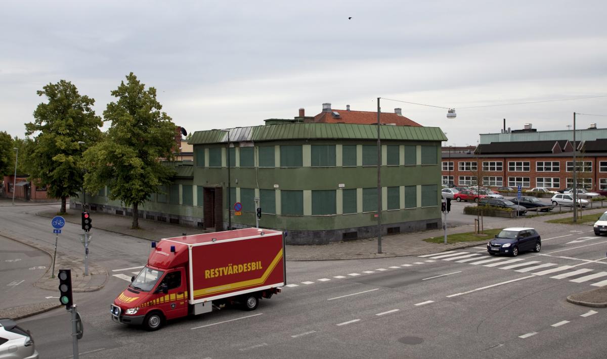 Innerstaden, Malmö, S Innerstaden, Saturnushuset, gata, lastbil, bil, trafikljus, övergångsställe, träd