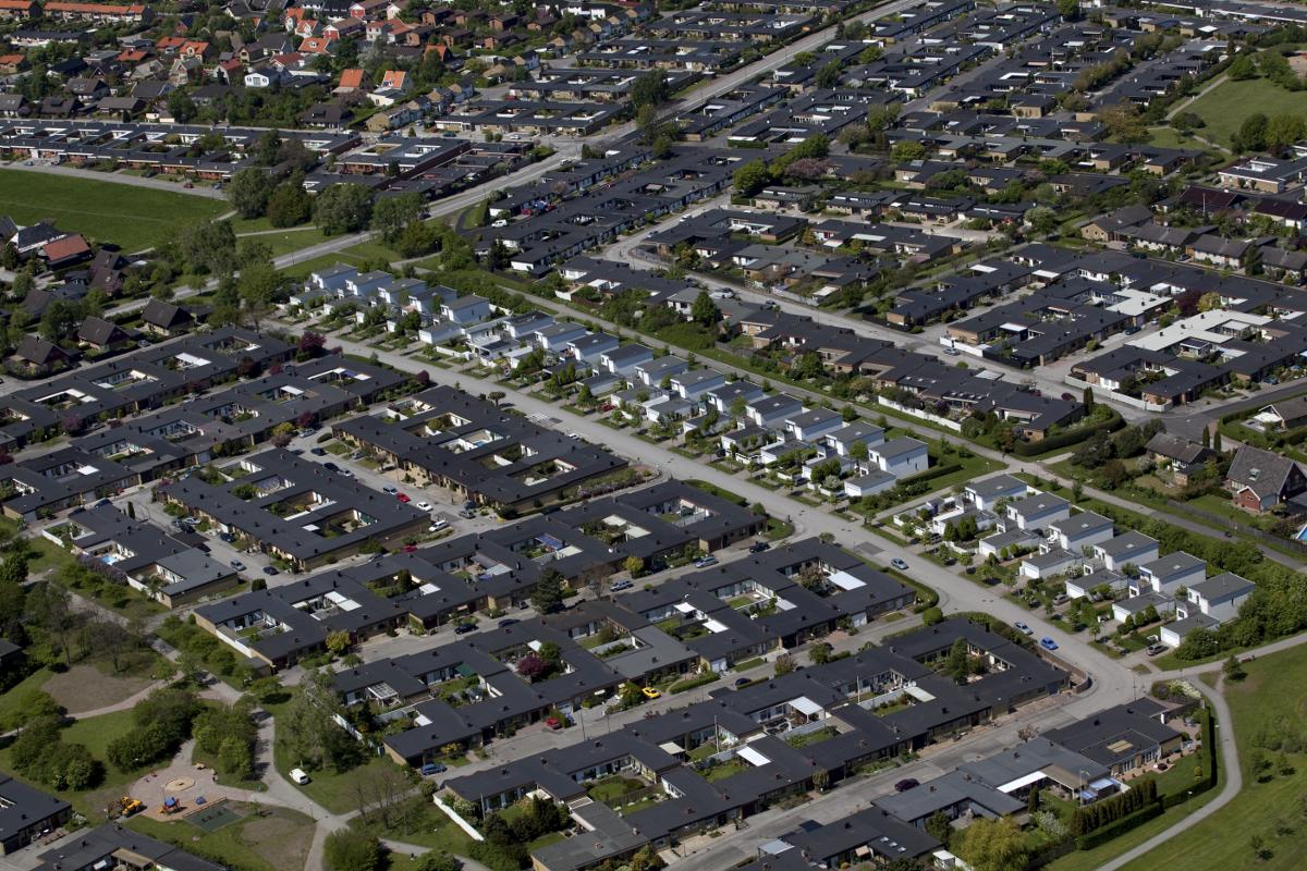 Djupadal, flygbild, hustak, radhus, bostadsområde