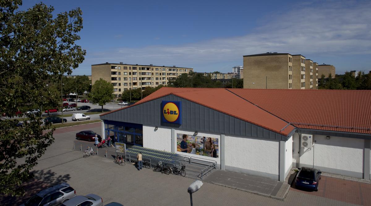 Hyllie, Lidl, mataffär, affär, flerfamiljshus, bilar, kundvagnar, cyklar, människor