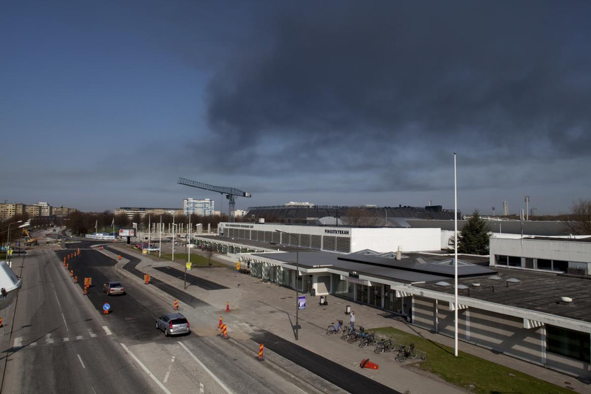 Hyllie, Europaporten, Stadionmässan, gata, bilar, Pingstkyrkan, flaggstång, kran