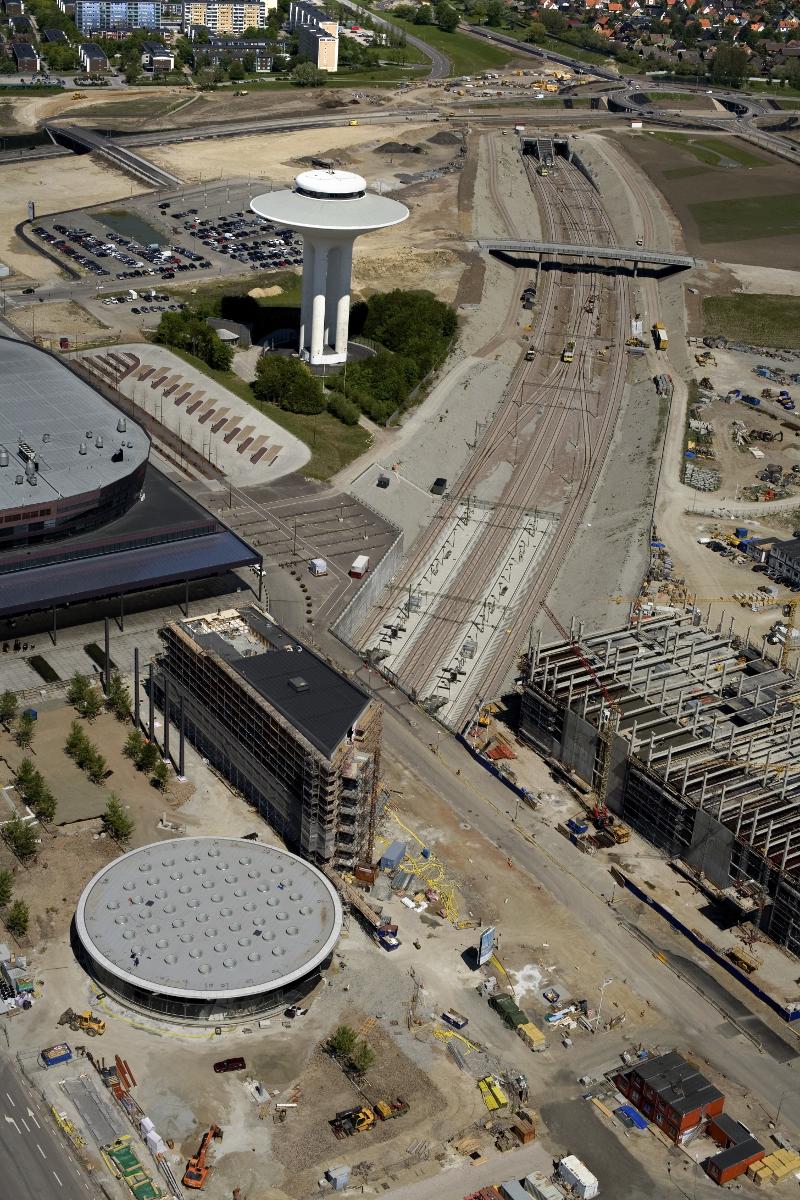 Malmö, Hyllie, flygbild, Hyllie station, Citytunneln, Hyllie vattentorn