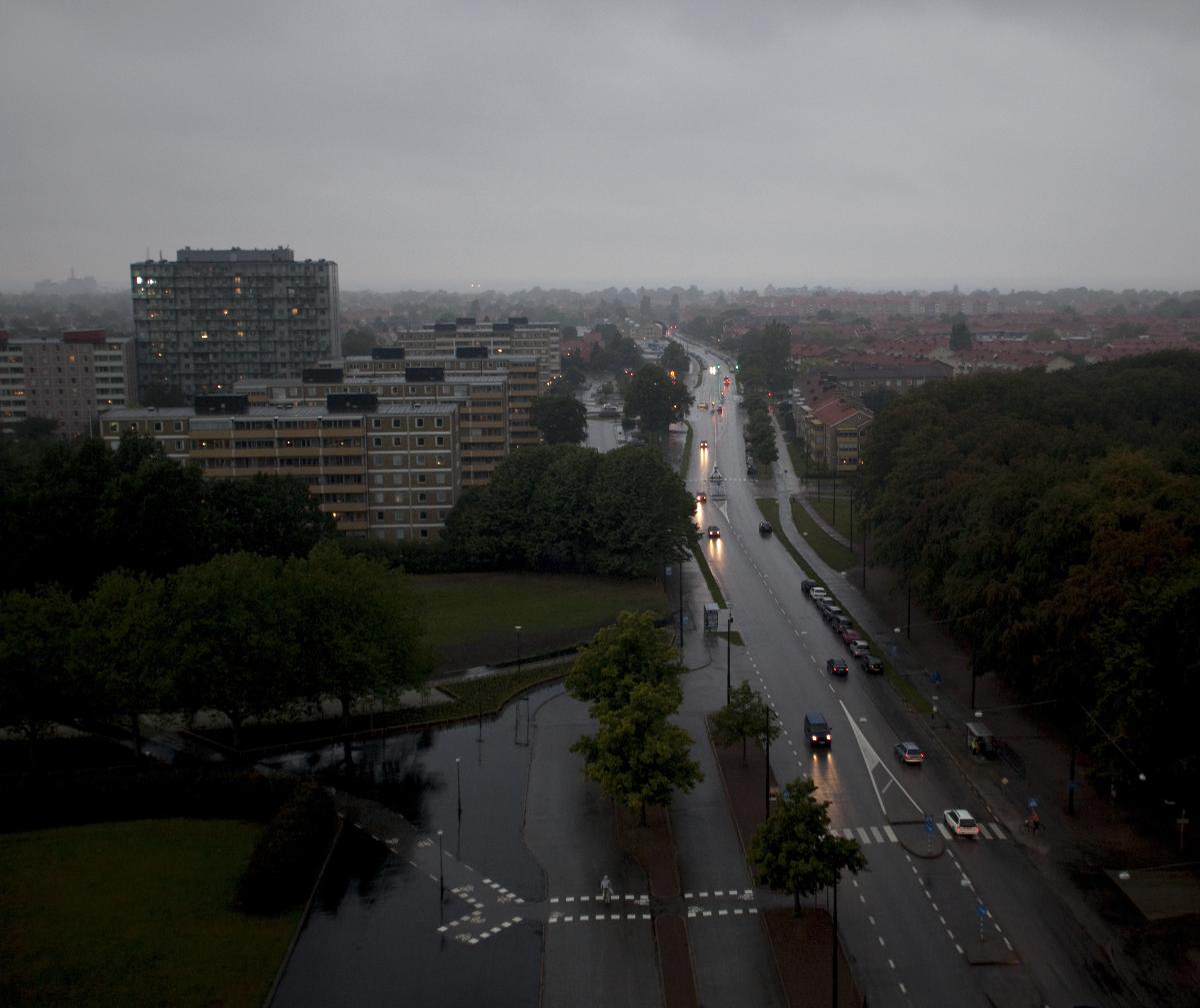 John Ericssons väg och Lorensborg till vänster. Fotograferat västerut.