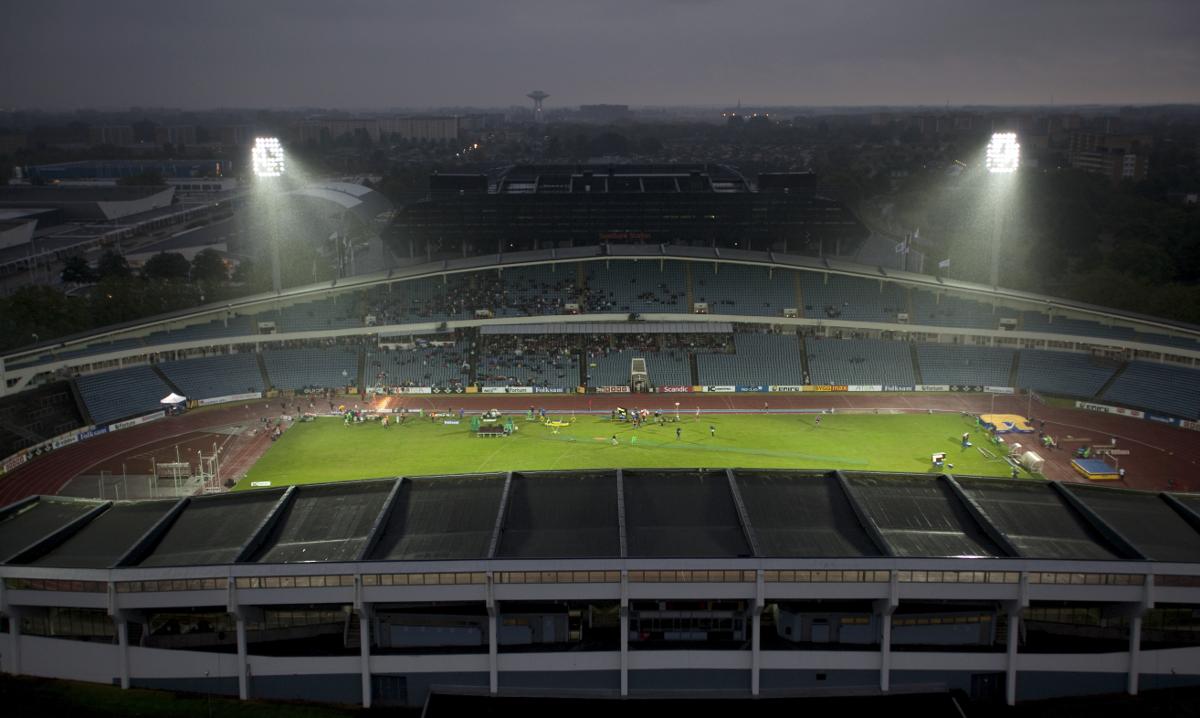 Malmö stadion i elljus.