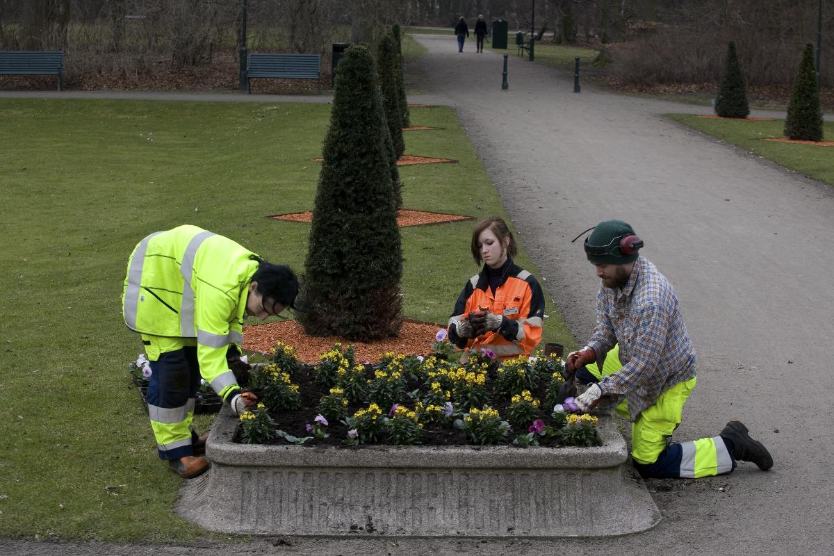 Plantering av blommor vid Margaretapaviljongen i Malmö.