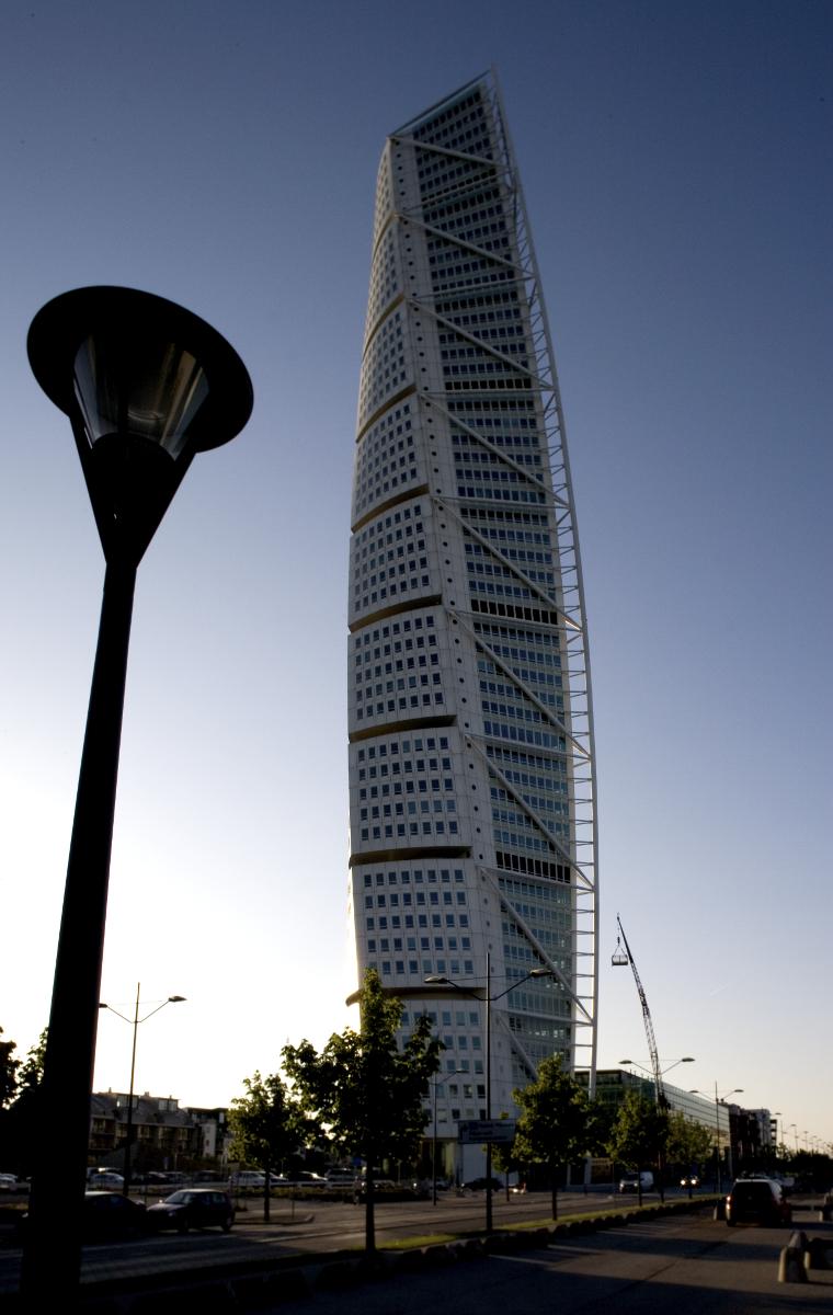 Arkiteketen Santiago Calatravas skapelse Turning torso i Malmö.