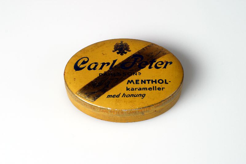 Oval karamellburk. Märke: Carl Peter Påhlssons MENTHOL-karameller med honung.