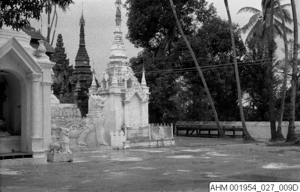 Bild från det stora tempelområdet vid Shwe Dagon pagoden. Omkr. 1954