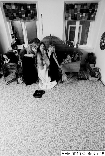 AHM 001974_466_016 :: Utklädda flickor + man med barn i knät