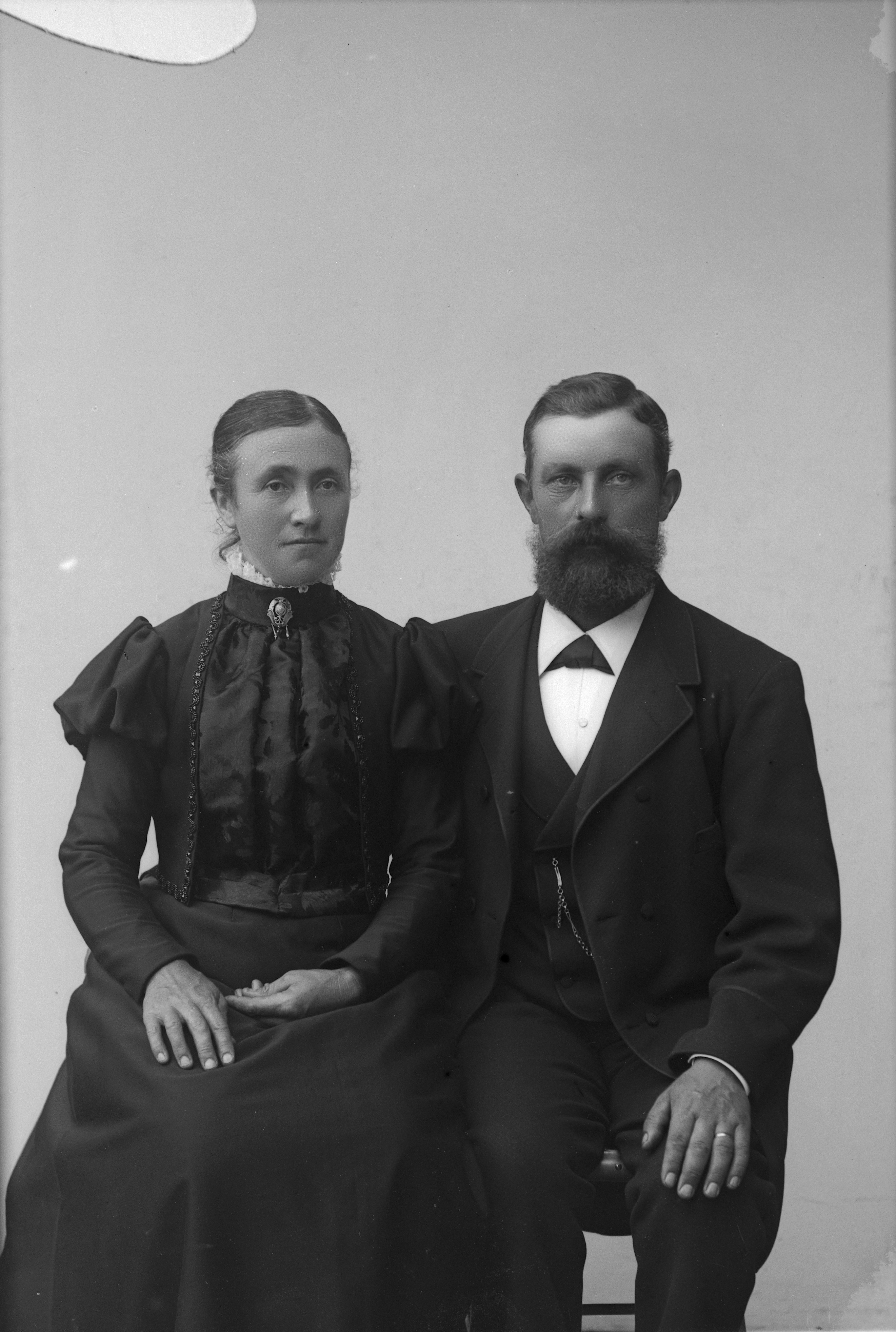 Porträtt i helfigur av lotsen Johan Petter Andersson Ahlberg med frun Johanna Fredrika.