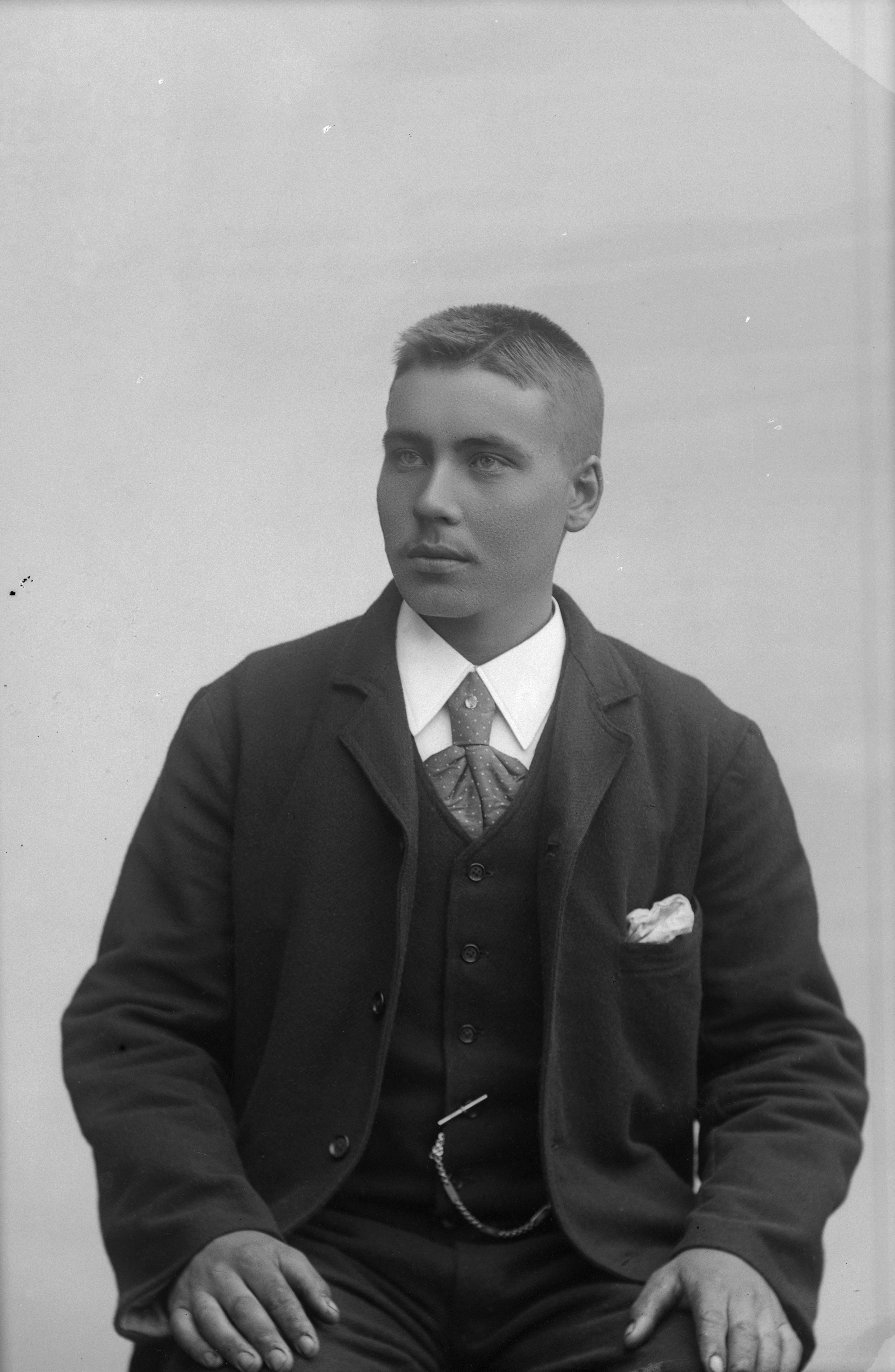 Porträtt i halvfigur av sjömannen Viktor Mattsson.