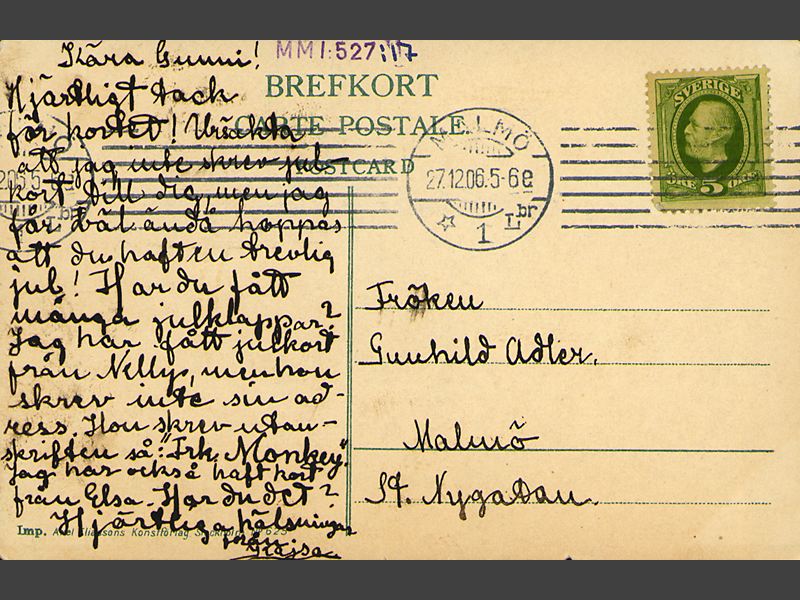 Kortet är adresserat till Fröken Gunhild Adler, Malmö".