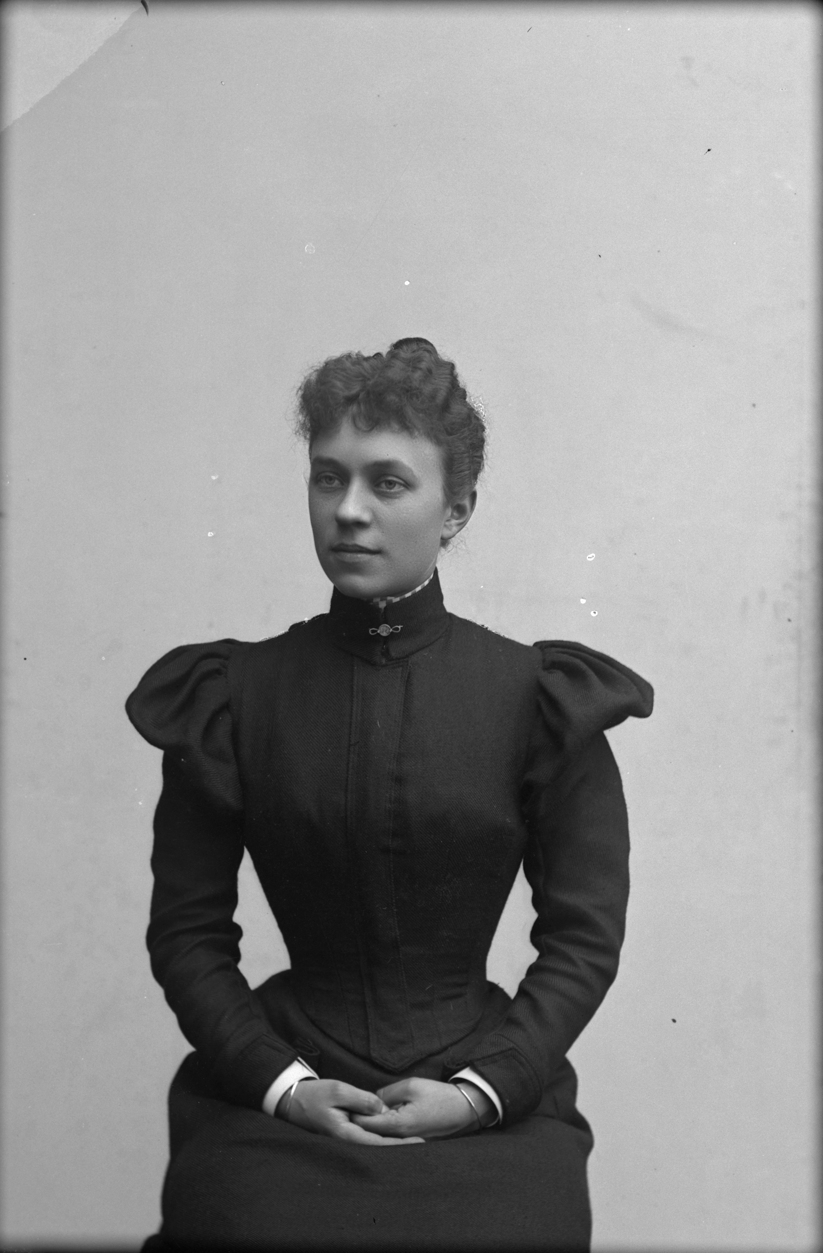 Porträtt i halvfigur av pigan Augusta Feuk.