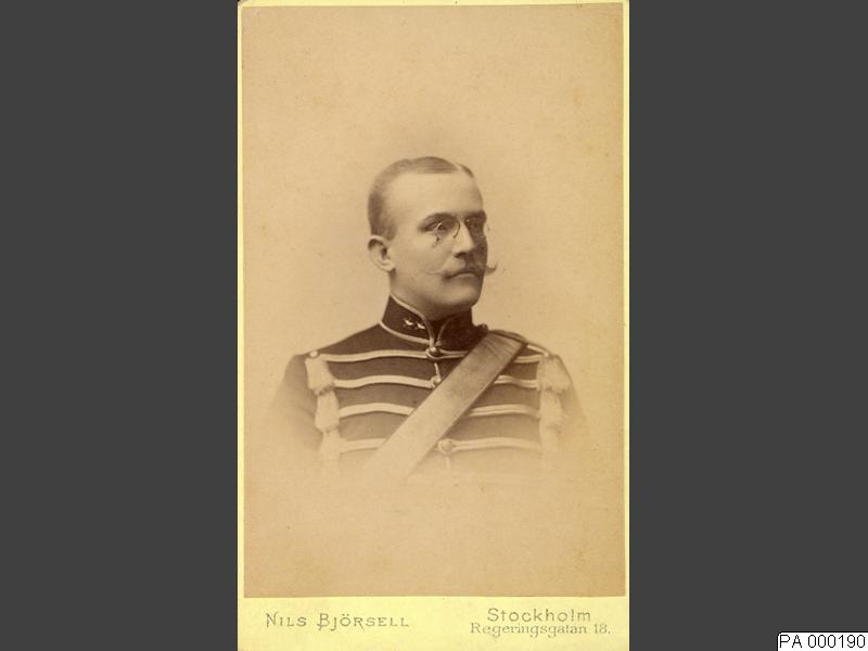 Visitkortsfotografi. Porträtt av överste Adolf Adelswärd, sekundchef vid Kungl. Livregementets Husarer och dessförinnan vid Kronprinsens Husarer.