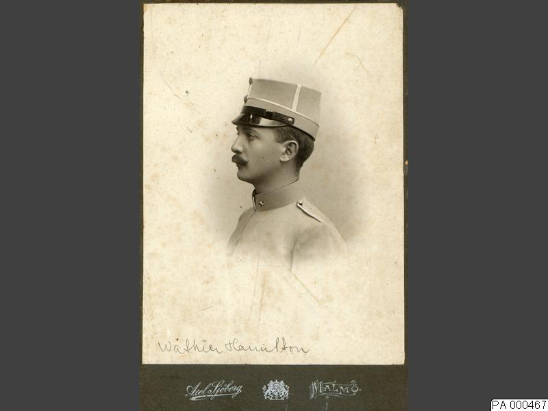 Visitkortsfotografi. Porträtt av ryttmästaren, greve Wathier Hamilton på Marsvinsholms slott.