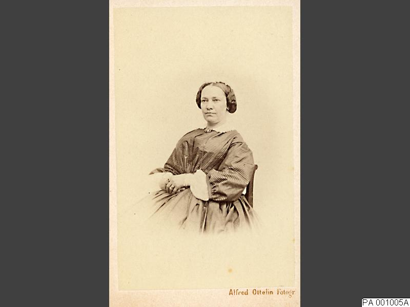 Visitkortsfotografi. Porträtt av fru Wilhelmina Aminoff (1821-1902), gift 1842 med friherre Bengt Adolf Rothkirch (1816-1866).