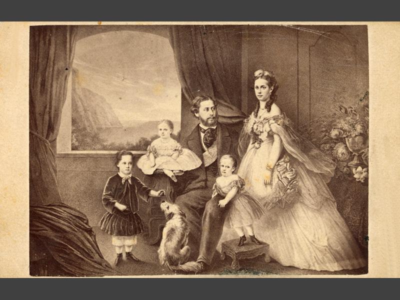 - Visitkortsfotografi. Porträtt av Edward, prins av Wales, senare kung Edward VII, prinsessan Alexandra och deras fem barn: Albert, George, senare kung George V, Louise, Victoria och Maud, senare drottning av Norge.