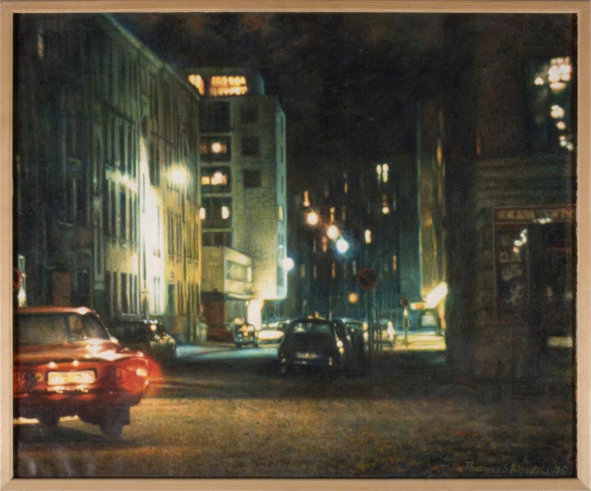 Enligt påskrift på dukens baksida är målningen utförd under hösten 1975, där finns också antecknat att motivet är från Holmgatan i Malmö nov. - 73. Målningen är alltså gjord under hösten -75 utifrån ett foto som Strömdahl själv tog i nov -73. Strömdahl var vid denna tid och ytterligare 20 år framåt starkt influerad av amerikansk fotorealism och svensk nyrealism.
