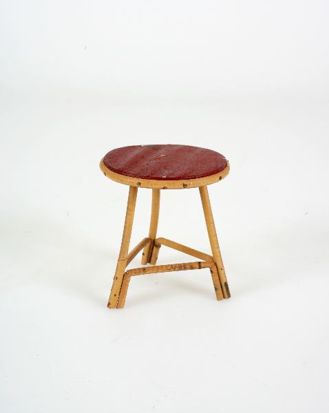 Runt, trebent bord av rotting med pergamoidklädd skiva.