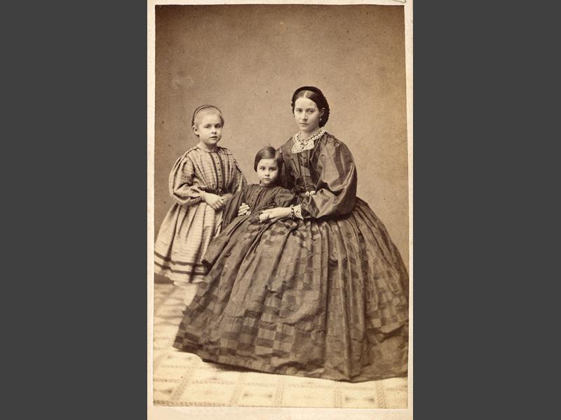 Visitkortsfotografi. Porträtt av Josefin Carolin Angelin, gift Gjertsson, med sina två barn Lydia och Ellen.