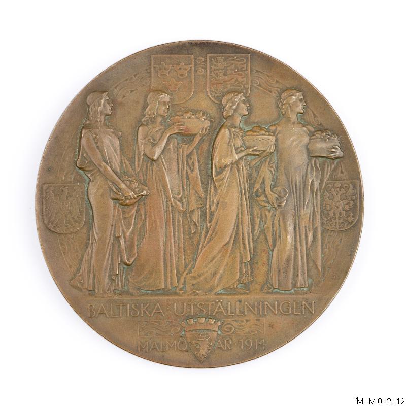 Medalj av brons från Baltiska utställningen 1914 i Malmö, märkt: Erik Lindberg.