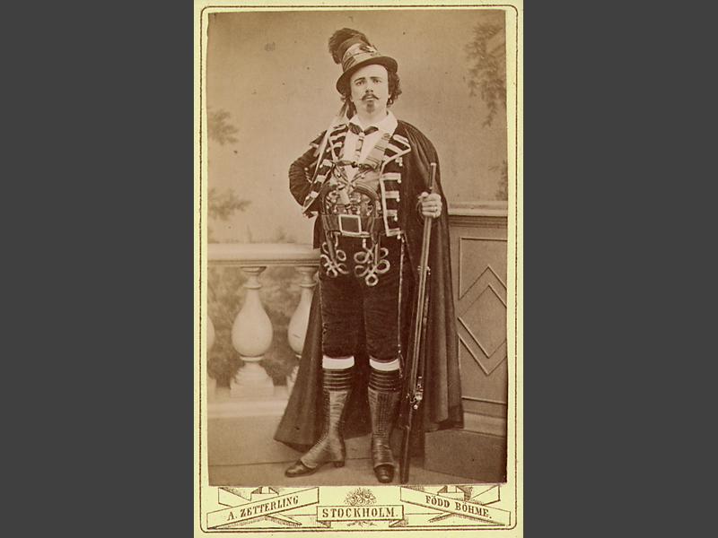 Visitkortsfotografi. Porträtt av operasångaren Karl Oskar Arnoldsson, klädd i en teaterdräkt för en roll.