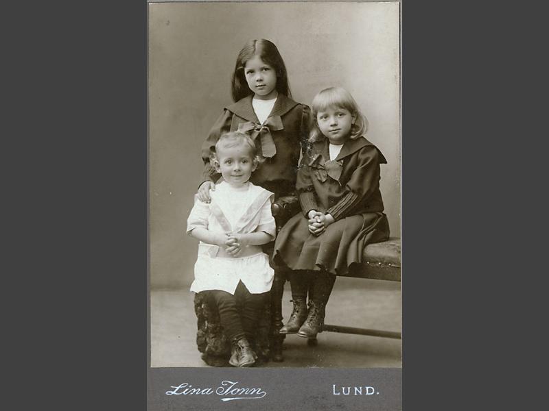 Visitkortsfotografi. Porträtt av Anna-Lisa, Brita och Lars Bengt Andreas Andersson. Barn till apotekare Vitus Andersson (1862-1908) och Anna Bernström (1874-1964).