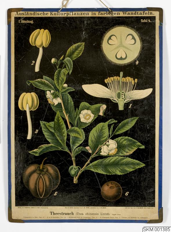 Ausländische kulturpflanzen in farbigen wandtafeln: Tafel 4. Theestrauch. Utan hängare med kantband. Hörnor av metall. På papp.
