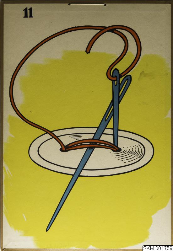Plansch på kartong. Ingår i en serie om 16 stycken åskådningsplanscher för kvinnlig slöjd.