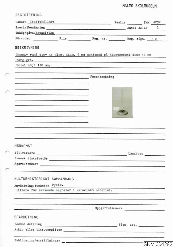 Stativhållare bestående av en massiv rund stav av plast monterad på en grå plastsockel.
